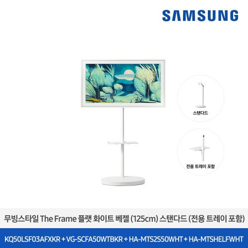 무빙스타일+무빙스탠드(스탠다드) 125cm(약 50인치) 해상도 : 4K(3840x2160) 베젤 : 플랫 화이트 무빙스탠드 색상 : 화이트 ※ 전용 트레이 포함